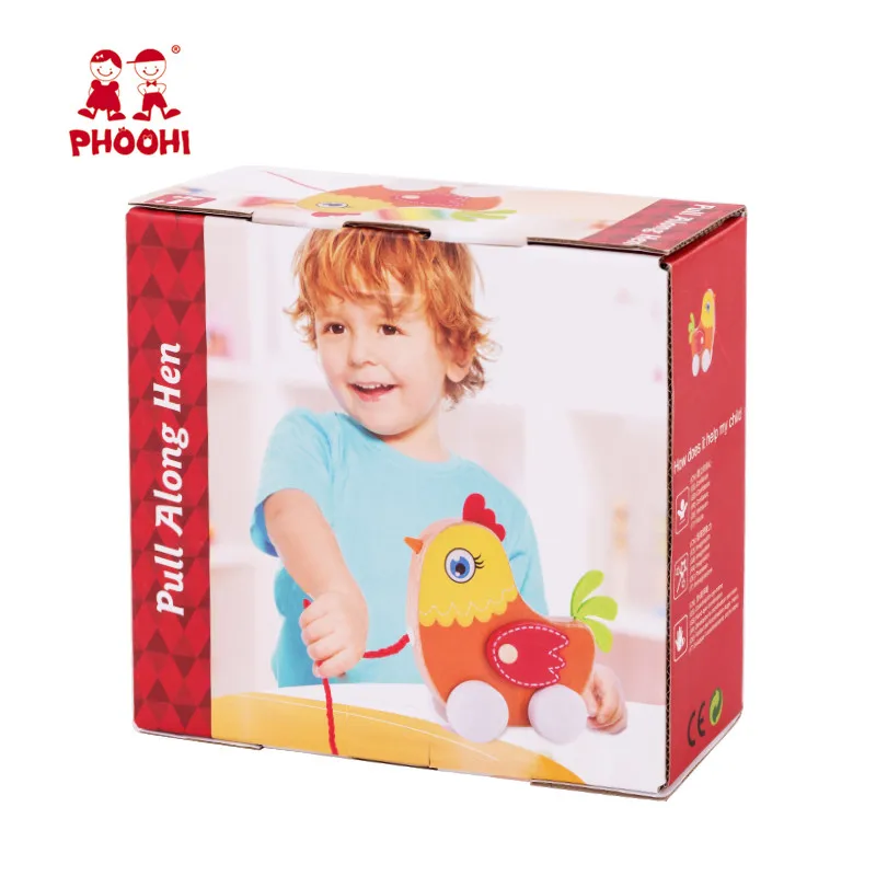 PHOOHI 2018 New Children Educational Chicken Animal Kids Wooden Pull Along Toy For Toddler 1+ Years SAWT818-2